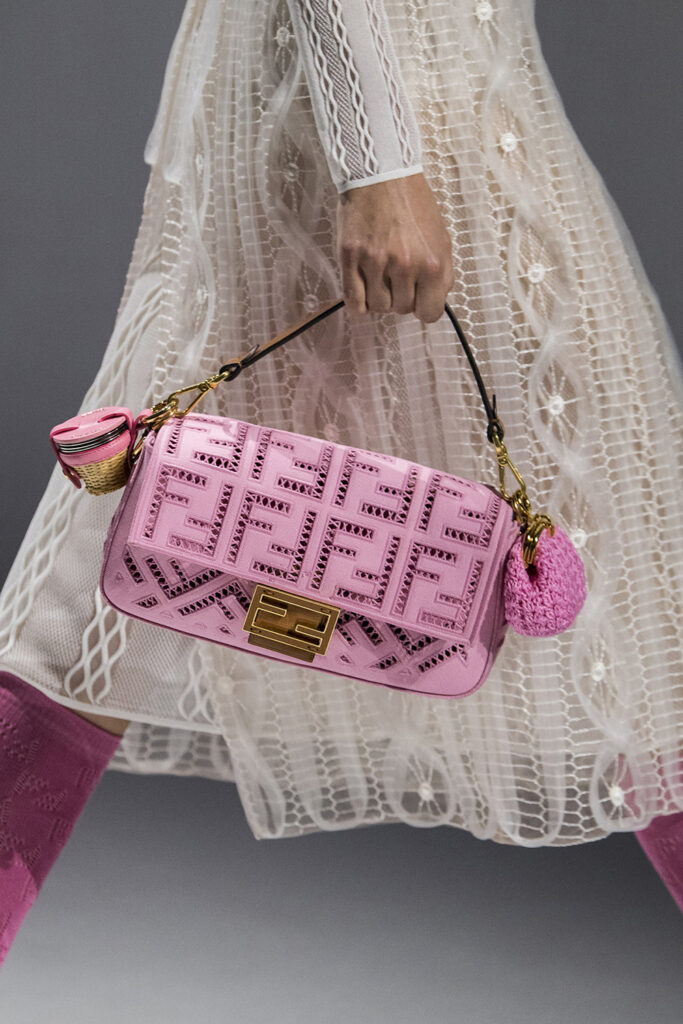 Αυτή τη σεζόν, οι τσάντες στο χρώμα της τσιχλόφουσκας μας μεταφέρουν πίσω στη ζωντανή μόδα της εποχής των ’00s. Σε αρκετές πασαρέλες, τσάντες διαφόρων σχημάτων, με μονογράμματα και σε διαφορετικά μεγέθη είχαν ένα κοινό πράγμα: την εκρηκτική απόχρωση του ροζ.