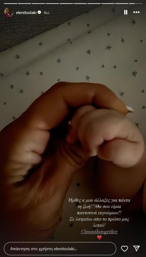 Η Ελένη Τσολάκη αισθάνεται ευτυχισμένη με τον ερχομό της κορούλας της, όπως έκανε γνωστό με την νέα ανάρτησή της στο instagram.