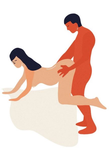 Ο άντρας πηγαίνει από πίσω, όρθιος και προχωρά σε διείσδυση. Εκείνη τη στιγμή, η γυναίκα καμπυλώνει την πλάτη της για να σηκώσει τους γλουτούς της.
