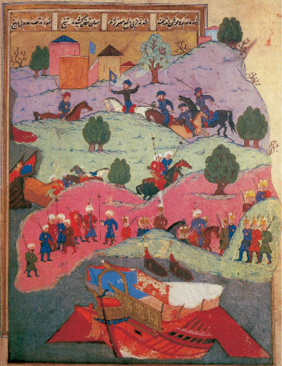 Παράλληλα, από τη βασιλεύουσα ξεκίνησε μια ακόμα τουρκική στρατιά 120.000 ανδρών με επικεφαλής τον ίδιο τον σουλτάνο. Τα τουρκικά πλοία επιτέθηκαν πρώτα στην Ίμβρο, την οποία και κατέστρεψαν, και κατόπιν στη Λήμνο. Εκεί όμως οι Τούρκοι αποκρούστηκαν και, για να εκδικηθούν τους Έλληνες που πολεμούσαν με τους Ενετούς, επιτέθηκαν και λεηλάτησαν τη Σύρο. Από τη Σύρο η αρμάδα του σουλτάνου κατέπλευσε στην Εύβοια και ελλιμενίστηκε στα Βασιλικά και στα Στείρα.