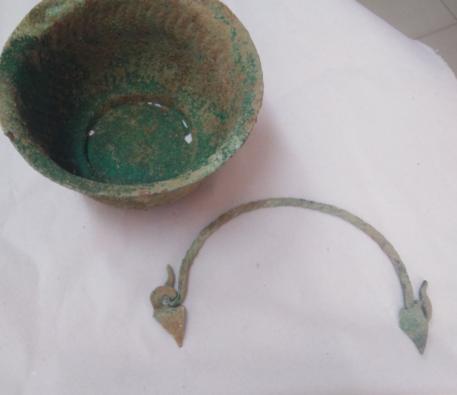 Προς έκθεση και εξαγωγή σημαντικών πληροφοριών, για την επεξεργασία του χαλκού και την δημιουργία αγγείων υψηλής αισθητικής, προσφέρεται και ο χάλκινος κάλαθος, με το ανάγλυφο σώμα και την πλοχμοειδή λαβή, στις απολήξεις της οποίας, εκατέρωθεν, είναι αναρτημένα δυο λεπτά χάλκινα φύλλα, που αποδίδουν με ρεαλισμό τα φύλλα του κισσού.