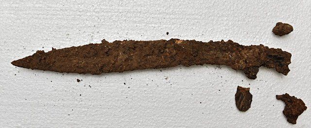 «Βρήκαμε επίσης ένα δόρυ και ένα ξίφος στον τάφο, το οποίο είναι το καλύτερα διατηρημένο αντικείμενο στον τάφο. Το ξίφος βρίσκεται αυτή τη στιγμή σε διαδικασία συντήρησης, η οποία διεξάγεται από τον ανώτερο συντηρητή-αποκαταστάτη Borko Vjesnica μέσω ενός έργου με την Αρχαιολογικό Μουσείο στο Σπλιτ και το οποίο θα μας παρέχει ολοκληρωμένα στοιχεία για τη διατήρηση, την τεχνολογία κατασκευής, την ακριβή χρονολόγηση και τυπολογία και την προέλευσή του. κόπης, που χρησιμοποιούνταν και στην ελληνική υποπεριφέρεια».
