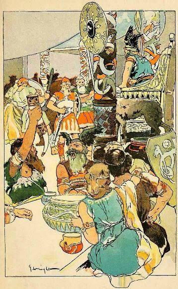 Με αυτές τις ταιριαστές γυναίκες οι νεκροί Βίκινγκς συμποσιάζονται και συνουσιάζονται κι όταν δεν κάνουν αυτά τα δύο ασκούνται για τον μεγάλο πόλεμο του Θεού Οντίν ενάντια στους Γίγαντες. Γι’ αυτή τη μεγάλη τελική μάχη στο Ράουναροκ προπονούνται μέρα-νύχτα στις ουράνιες πεδιάδες και κατεβάζουν ανεξάντλητες ποσότητες από γουρουνόπουλα και μεθυστικό υδρόμελι.