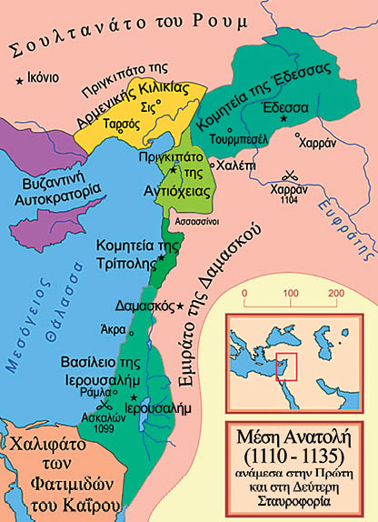 Μέχρι το 1110 πόλεις όπως η Έδεσσα, η Αντιόχεια, η Ιερουσαλήμ, η Τορτόσα, η Βηρυτός, η Λαοδικεία, η Τρίπολη, η Τύρος και η Άκρα βρίσκονταν οριστικά υπό λατινική κατοχή.