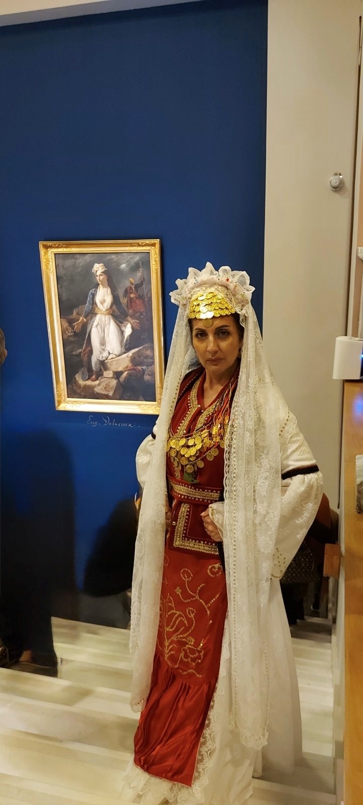 Η γράφουσα επέλεξε για τη συμμετοχή της στην Πομπή  να ενδυθεί με την φορεσιά από την Άνω Δρόπολη της Βόρειας Ηπείρου για να τιμήσω τα βασανισμένα μας αδέρφια εκεί που ζούνε μέχρι σήμερα το δικό τους Μεσολόγγι ως ελεύθεροι και σύσσωμες οι «Ελληνικές» Κυβερνήσεις αδιαφορούν να εφαρμόσουν το πρωτόκολλο Κέρκυρας που προβλέπει την ανεξαρτησία τους αλλά και να τιμήσω παράλληλα τον ήρωα Κωνσταντίνο Κατσίφα που δολοφονήθηκε  στους Βουλιαριάτες έγκλημα για το οποίο κανείς δεν τιμωρήθηκε μέχρι σήμερα.