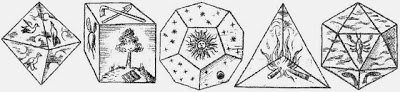 Σύμφωνα με την Πυθαγόρεια φιλοσοφία η φύση μπορεί να γίνει κατανοητή μονάχα μέσω της αριθμητικής θεωρίας των αναλογιών σε σχέση με τη γεωμετρική μελέτη των στερεών. Οι Πυθαγόρειοι, λοιπόν, θεωρούν ότι όλα τα στερεά μπορούν να ελεγχθούν βάσει πέντε αρχικών κανονικών πολύεδρων σχημάτων. Ο Πλάτων, έτσι, στον Τίμαιο (54δ- 55δ), παρουσιάζει τα τέσσερα από τα πέντε κανονικά πολύεδρα σχήματα, (το κανονικό τετράεδρο, το κανονικό οκτάεδρο, το κανονικό εικοσάεδρο, και το εξάεδρο ή κύβο), των οποίων η συστατική μονάδα είναι το τρίγωνο (ορθογώνιο και ισόπλευρο).