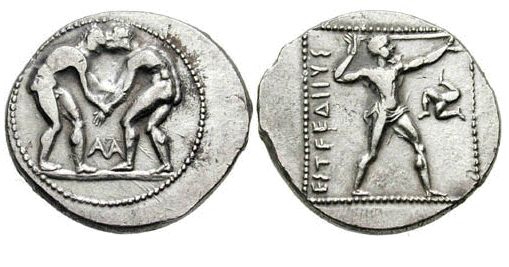 Τον 5ο αιώνα π. Χ., οι κυβερνώντες της Σπάρτης και πολλών άλλων συμμαχικών πόλεων – κρατών, ελλείψει χρημάτων, όταν το 431 π. Χ. ξέσπασε ο Πελοποννησιακός Πόλεμος, που τους έφερε αντιμέτωπους με την Αθήνα, δανείστηκαν άτοκα πόρους που δεν μπορούσαν να καταλάβουν: τις αποταμιεύσεις των ιερών της Ολυμπίας και των Δελφών, που προορίζονταν θεωρητικά για τις τελετές και τη συντήρηση των ιερών χωρών».