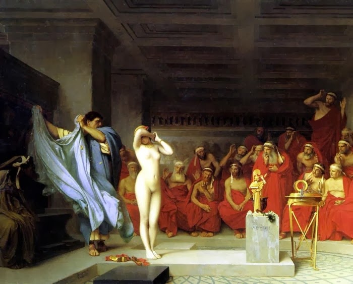 Οι δικαστές τα έχασαν. Νόμισαν ότι έβλεπαν μπροστά τους την ίδια τη Θεά Αφροδίτη. Οι φήμες για το απαράμιλλο κάλλος της εταίρας αποδείχθηκαν αληθινές.