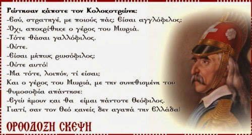 «Η Ιστορία και το μέλλον της Ελλάδος στηρίζονται πάνω σε τρεις λέξεις: Θρησκεία, Ελευθερία, Πατρίς».
