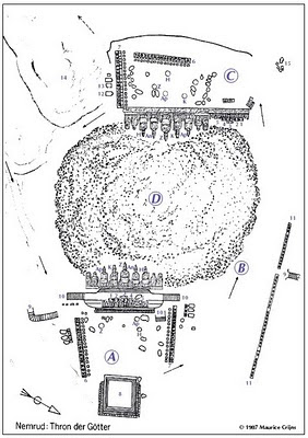 Το ταφικό μνημείο έχει δύο μεγάλα πλατώματα, ένα προς την Ανατολή και ένα προς την Δύση, καθώς και ένα μικρότερο στο Βορρά. Τα αγάλματα των θεών της Κομμαγηνής, ένας συγκρητισμός Ελληνικών και Περσικών θεοτήτων, είχαν ύψος 8 έως 10 μέτρα και θυμίζουν έντονα τα αγάλματα στις Θήβες της Αιγύπτου. Υπέστησαν μεγάλες ζημίες στο παρελθόν από σεισμούς. Κάθε κεφάλι αγάλματος έχει τοποθετηθεί σήμερα μπροστά από το αντίστοιχο σώμα.