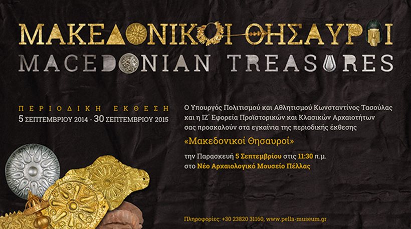 Η περιοδική έκθεση, που έχει τίτλο «Μακεδονικοί Θησαυροί», θα φιλοξενηθεί στον άνω όροφο του νέου Αρχαιολογικού Μουσείου Πέλλας και θα διαρκέσει ως τις 30 Σεπτεμβρίου του 2015.