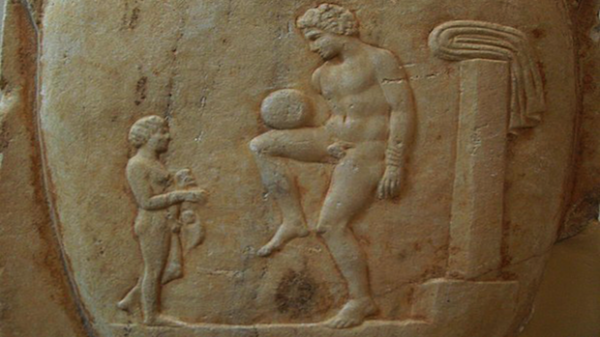 Ακόμη μία αρχαία απεικόνιση, που δείχνει αθλητή να παίζει με μπάλα