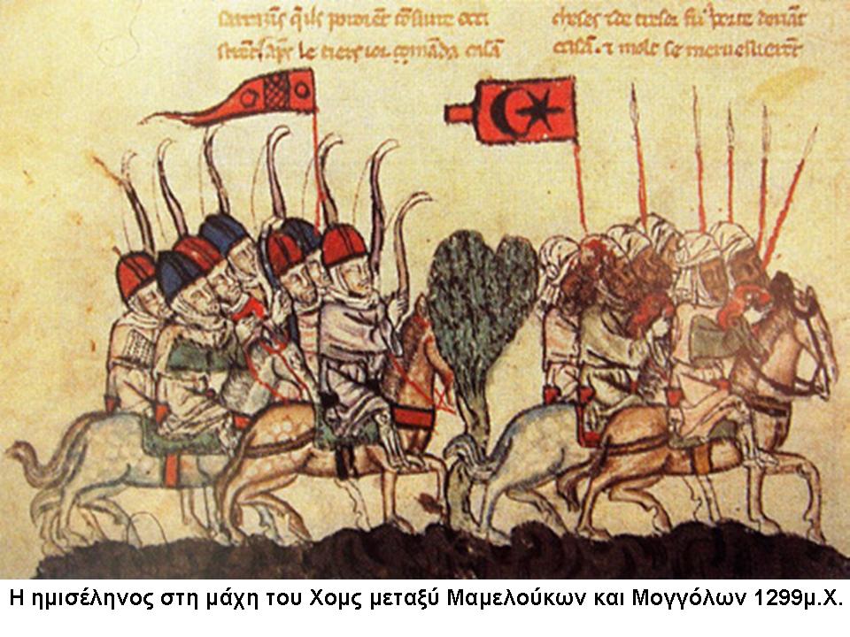 Ειδικά, οι Σελτζούκοι, είχαν υιοθετήσει πλήθος βυζαντινών στοιχείων, και προφανώς συνέβαλαν στην διάδοσή του ή εν πάση περιπτώσει στη διαχρονική του επιβίωση στο χώρο της Εγγύς και Μέσης Ανατολής, μεταξύ των Αράβων. Σε απεικόνιση χειρογράφου του 1299, στη μάχη του Χομς, μεταξύ Μογγόλων και Μαμελούκων, φαίνονται οι τελευταίοι να κρατούν σημαία με την ημισέληνο (βλ. Φωτο).