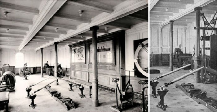 Πλοία όπως Τιτανικός είχαν τον καλύτερο εξοπλισμό, με μηχανήματα κωπηλασίας και παράλληλες μπάρες, βάρη, σάκους πυγμαχίας, καθώς και στατικά ποδήλατα που συνδέονταν με τεράστια καντράν, τα οποίες ανέφεραν (εικονικά) τη διανυθείσα απόσταση.