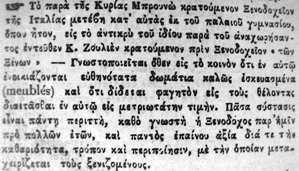 Τώρα το τι γινόταν στα περισσότερα από τα μικρά αυτά ξενοδοχεία, από πλευράς καθαριότητας, δεν περιγράφεται. Ο Αντώνης Βερβενιώτης μας γράφει σχετικά (1900):
