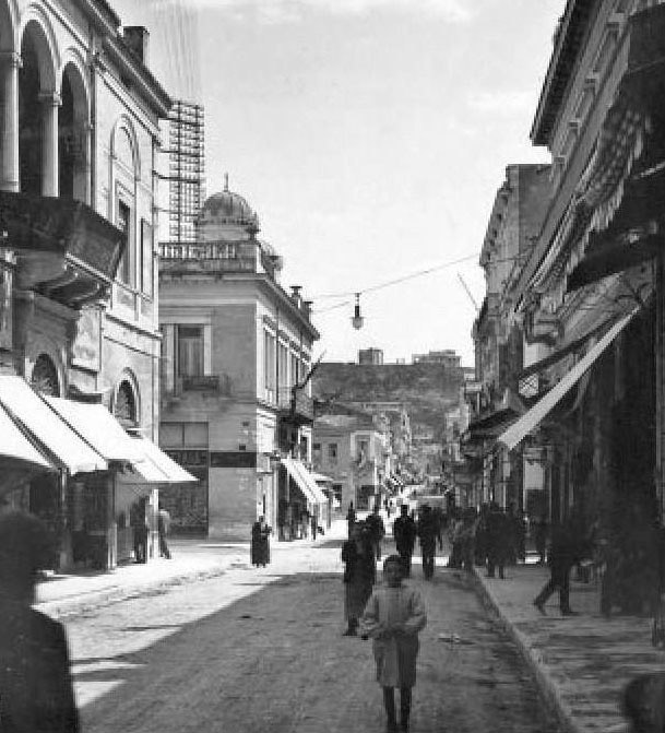 «…Η συγκέντρωσις του πλήθους γίνεται κατά δεύτερον λόγον εις τας οδούς του Αιόλου και της Αθηνάς. Αι οδοί αυταί δεν απέβαλον εισέτι ολοτελώς τον χρωματισμόν εμπορικών οδών ανατολικής πόλεως. Όλα αυτά, τα έξωθεν των θυρών κρεμάμενα αντικείμενα, προδίδουσιν τας ανατολικάς συνηθείας των πραγματευτάδων, οίτινες εκθέτουσιν έξωθεν της θύρας των ό,τι εκλεκτόν έχει ένδον το κατάστημά των…».
