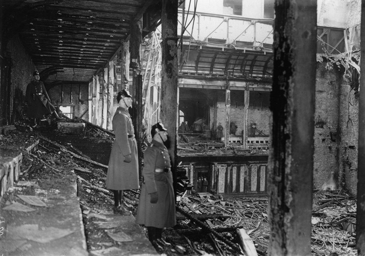 Εντωμεταξύ, τα νέα για τη φωτιά στη Βουλή έφτασαν στα αυτιά του Χέρμαν Γκέρινγκ, ο οποίος κατέφτασε εσπευσμένα στο Ράιχσταγκ και λίγο μετά ακολούθησαν οι Χίτλερ και Γκέμπελς. Η ισχυρή τριανδρία του ναζισμού αποφάσισε στα γρήγορα ότι ο εμπρησμός ήταν έργο των κομμουνιστών, παρά το γεγονός ότι ο Λούμπε ούρλιαζε πως λειτούργησε ανεξάρτητα και δεν είχε καμία σχέση με το Γερμανικό Κομμουνιστικό Κόμμα.