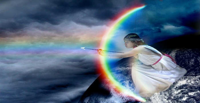 Ποτέ όμως η θεά Ίριδα δεν αποτέλεσε προσωποποίηση του ουράνιου τόξου. Απεικονίσεις της στην αρχαιότητα υπάρχουν πολλές, παρόλα αυτά σε καμιά τους δεν παριστάνεται ως ουράνιο τόξο η ίδια, ούτε και συνοδεύεται απ’ αυτό. Η ουσία είναι πάντως πως .
