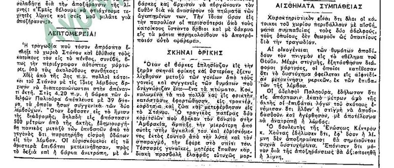 Χαρακτηριστικό επίσης είναι ότι οι κάτοικοι του Στάνου, περιέβαλαν με συμπάθεια τους δύο νεαρούς λεμβούχους, καθώς δεν τους θεωρούσαν υπεύθυνους της τραγωδίας. Οι κηδείες των θυμάτων έγιναν σε κλίμα ανείπωτης θλίψης και σπαραγμού. Στον Στάνο έφτασαν 2 γιατροί για να προσφέρουν βοήθεια σε όσους τη χρειάζονταν.