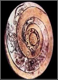 Γύρω από την τρύπα υπήρχε μια σπειροειδής χάραξη που στο πλαίσιό της ακτινοβολούσε, και που μια προσεκτικότερη ματιά έδειχνε ότι στο εσωτερικό της υπήρχε μια σειρά από γραφικούς χαρακτήρες (σαν ιερογλυφικά), που έδιναν την εντύπωση ενός κειμένου.