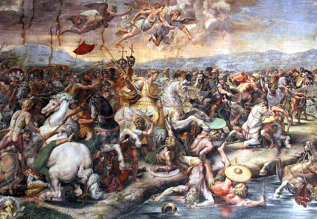 Η κρίσιμη μάχη δόθηκε στις 28 Οκτωβρίου του 312 στη Μιλβία γέφυρα του Τίβερη, έξω απ’ τη Ρώμη. Την παραμονή της μεγάλης μάχης, σύμφωνα με μεταγενέστερες πηγές, ο Μέγας Κωνσταντίνος είδε στον ουρανό με φωτοειδείς ακτίνες το χριστιανικό σύμπλεγμα ΧΡ, σε ανάπτυξη σταυρού με τη φράση «εν τούτω νίκα» (θα αναφερθούμε σε αυτό εκτενώς στη συνέχεια).