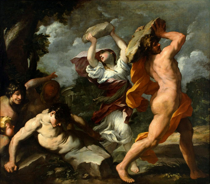 Οι πέτρες που πετούσε ο Δευκαλίωνας μεταμορφώνονταν σε άνδρες και αυτές που πετούσε η Πύρρα μεταμορφώνονταν σε γυναίκες. Από την πρώτη δε πέτρα που πέταξε ο Δευκαλίωνας προήλθε ο Έλληνας, γενάρχης των Ελλήνων.