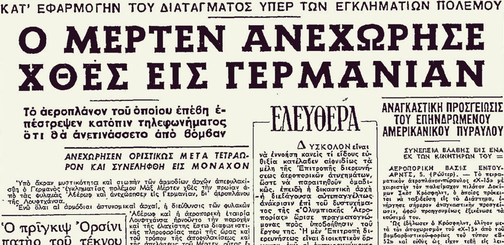 Η αντίδραση της Γερμανίας ήταν έντονη και οι πιέσεις πλέον γίνονται αφόρητες. Ο Καραμανλής βρίσκεται σε δύσκολη θέση καθώς την ίδια εποχή που σκεφτόταν την απελευθέρωση του Μέρτεν, στις φυλακές βρισκόταν -όντας πολιτικός κρατούμενος- ο Μανώλης Γλέζος και οι συνειρμοί που δημιουργούνταν ήταν τουλάχιστον εύλογοι.