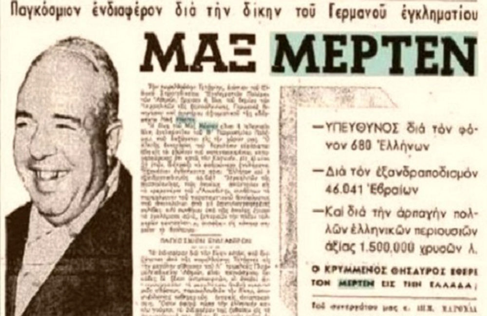 Το «ευχαριστώ» του Μαξ Μέρτεν έρχεται τον Σεπτέμβριο του 1960 και προκαλεί πολιτικό σεισμό στην Αθήνα. Τα γερμανικά έντυπα «Ηχώ του Αμβούργου» και «Ντερ Σπίγκελ» δημοσιεύουν αποσπάσματα της κατάθεσής του στις γερμανικές αρχές σύμφωνα με τα οποία «ο Κωνσταντίνος Καραμανλής, ο υπουργός Εσωτερικών και εξ απορρήτων του, Δημήτριος (Τάκος) Μακρής, η σύζυγός του Δοξούλα το γένος Λεοντίδη και ο υφυπουργός Εθνικής Άμυνας Γεώργιος Θεμελής ήταν έμμισθοι πληροφοριοδότες των γερμανικών αρχών Κατοχής και για τις πολύτιμες πληροφορίες που είχαν δώσει, σχετικά με την Αντίσταση, πήραν ανταμοιβή από τις κατασχεμένες περιουσίες των Εβραίων»!