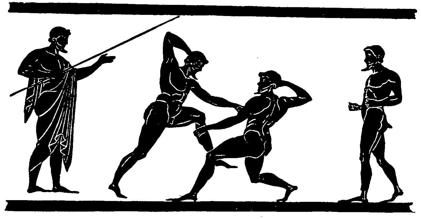 Ξεκίνησε ως καθαρά πολεμικό αγώνισμα και διατηρήθηκε ως τέτοιο μόνο στη Σπάρτη, γι αυτό και δεν έγινε αμέσως δεκτό στους Ολυμπιακούς αγώνες, διότι το πνεύμα αυτών των αγώνων είναι ειρηνικό και όχι πολεμικό. Μετά από πολύχρονες προσπάθειες και αφού αφαιρέθηκαν τα στοιχεία πού του έδιναν χαρακτήρα άγριας συμπλοκής και συμπεριλήφθηκε στους Ολυμπιακούς αγώνες, από την 33η Ολυμπιάδα το 648π.χ. και έγινε σε λίγο καιρό όπως αναφέρει ο Φιλόστρατος των εν Ολυμπία το κάλλιστον. Πρώτος νικητής ήταν ο Λύγδαμις από τις Συρακούσες.