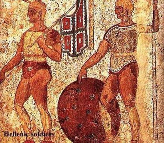 Οι Πέρσες είχαν στα ακόντια τους τον χρυσό αετό ή τον κόκορα. Οι Σκύθες τον δράκοντα.Οι Έλληνες είχαν στις ασπίδες τους όμοια σημεία για να αναγνωρίζονται στη μάχη. Οι Σπαρτιάτες είχαν το »Λ» ή τους Διόσκουρους. Οι Αρκάδες το ρόπαλο του Ηρακλή.