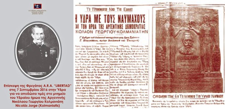 Την ίδια χρονιά, το αργεντίνικο ιστιοφόρο «Σαρμιέντο» κατέπλευσε στην Ύδρα φέρνοντας δώρο μια χάλκινη αναμνηστική πλακέτα στην οποία εικονίζονται δύο γυναίκες, η Αργεντινή και η Ελλάδα, να στεφανώνουν τον υδραίο ήρωα Κολμανιάτη. Το 1949, η ίδια η Εβίτα Περόν έστειλε προτομή του Νικόλα Χόρχε στην Ύδρα, η οποία εκτίθεται σήμερα στο Ιστορικό Αρχείο του νησιού. Η παράδοση αυτή συνεχίστηκε και μεταπολεμικά, μέχρι το 1997 τουλάχιστον, με ετήσιες εθιμοτυπικές επισκέψεις αργεντίνικων πλοίων στην Ύδρα.