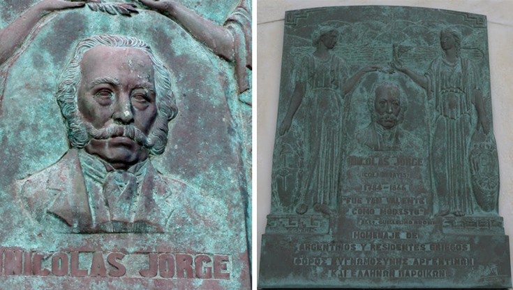 Σε ένδειξη ευγνωμοσύνης, η κυβέρνηση της Αργεντινής έστειλε το 1937 με το πολεμικό «Σαρμιέντο» την ορειχάλκινη πλάκα με τη μορφή του υδραίου ήρωα που εντοιχίστηκε στο μνημείο που βρίσκεται στο λιμάνι της Ύδρας, δίπλα στη Σχολή Εμποροπλοιάρχων. Τον Νοέμβριο του 1949, η Εβίτα Περόν έστειλε άλλη μια χάλκινη προτομή του Χόρχε που φυλάσσεται στο Ιστορικό Αρχείο και Μουσείο της Ύδρας (ΙΑΜΥ).