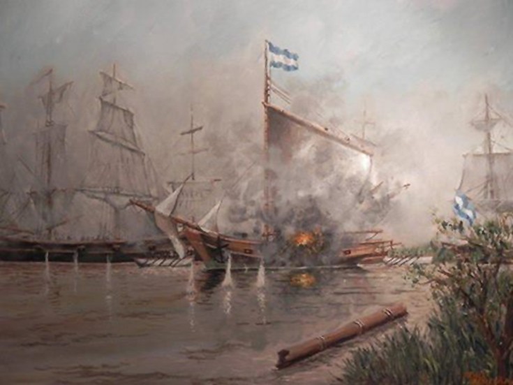 Σειρά είχε μετά η περιβόητη ναυμαχία για την κατάληψη της νήσου Γκαρσία, μια μάχη που οι ιστορικοί χαρακτήρισαν «γιγαντομαχία». Η ιστορία της Αργεντινής αρχίζει να μνημονεύει τον υδραίο ναυτικό από τη 10η Μαρτίου 1814, όταν στη διάρκεια της ναυμαχίας της νήσου Μάρτιν Γκαρσία ο επαναστατικός στόλος «μετά από πολύωρο και πεισματώδη δράση, έτρεψεν εις φυγήν τους Ισπανούς».