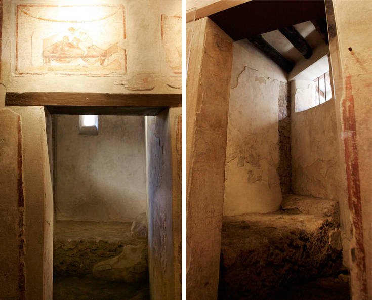 Επίσης αποκαλύφθηκαν πέτρινα κρεβάτια, καθώς τα ξύλινα που ήταν πιθανό να χρησιμοποιούνταν, καταστράφηκαν από την έκρηξη του Βεζούβιου το 79 μ.Χ.