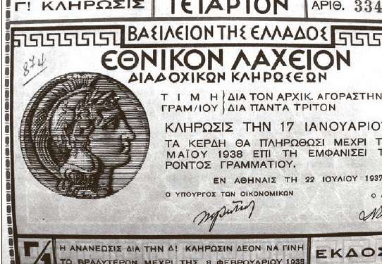Το Εθνικόν Λαχείον ένα μόλις χρόνο μετά την πρώτη έκδοση, το 1937