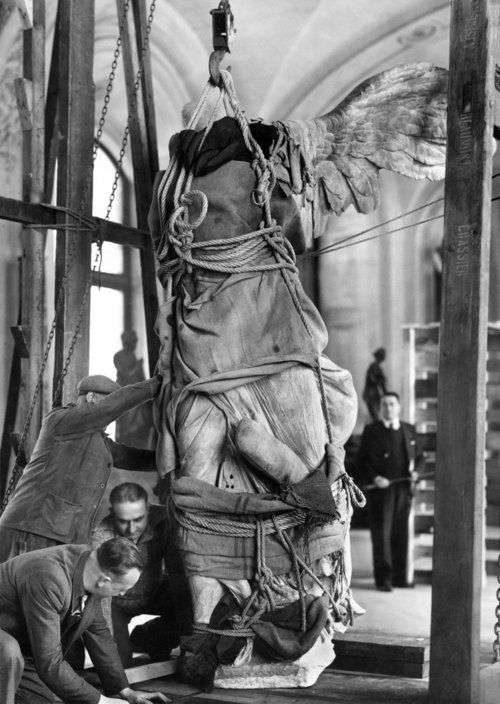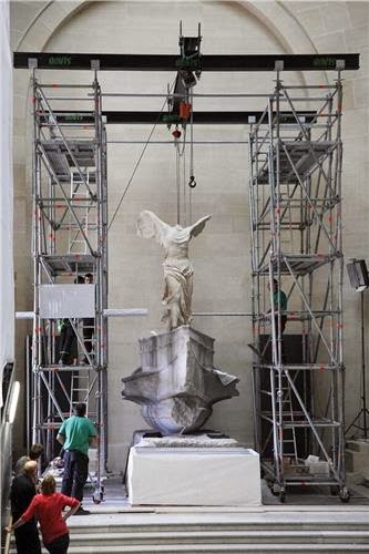 Οι επισκέπτες του Λούβρου θα μπορούν να αντικρίσουν ξανά το άγαλμα από τις αρχές του καλοκαιριού του 2014, γιατί η κλίμακα Νταρού, στην οποία φιλοξενείται, είναι κλειστή για ανακαίνιση. Σύμφωνα με το Κέντρο Έρευνας και Αποκατάστασης των Μουσείων της Γαλλίας, το άγαλμα ήταν βαμμένο με χρώμα.