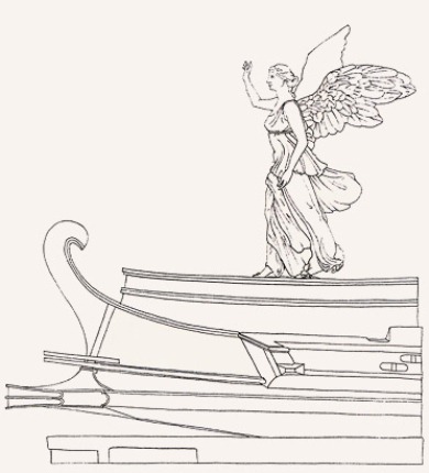 Ήταν έτσι δημιουργημένο απ’ τον γλύπτη, που χρειαζόταν να στέκεται στην πλώρη, για να υπάρχει η απαραίτητη ισορροπία. Το πρόβλημα έλυσαν Αυστριακοί αρχαιολόγοι το 1875, όταν συνειδητοποίησαν ότι τελικά η πλώρη ήταν μέρος της σύνθεσης της Νίκης.