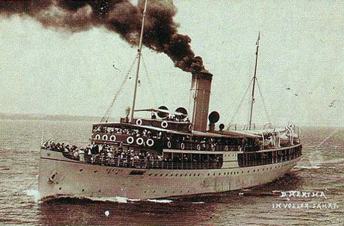 Το καράβι απότομα γέρνει αριστερά και αρχίζει να βυθίζεται. Ανέβηκα στην κουπαστή και έπεσα στη θάλασσα. Στο μεταξύ πολλές ναυαγοσωστικές βάρκες άρχισαν να αναποδογυρίζουν γιατί ήταν υπερφορτωμένες. Οι στιγμές ήταν εφιαλτικές. Από όλα τα σημεία ακούγονταν σπαρακτικές κραυγές βοήθειας. Κολυμπώ μερικά μέτρα και βλέπω τη λάμπα να τρεμοσβήνει και ακριβώς την ώρα εκείνη το πλοίο να χάνεται. Καθώς κολυμπούσα προς την ακτή ένιωθα κάθε λίγο τα σώματα των πνιγμένων που ανέβαιναν στην επιφάνεια του νερού. Μετά από ώρες έφθασα στην ακτή. Στις δέκα το πρωί πέρασε ένα καΐκι και όπως οι ναυτικοί με είδαν να στέκομαι γυμνός στην ακτή, ήρθαν κοντά μου”.