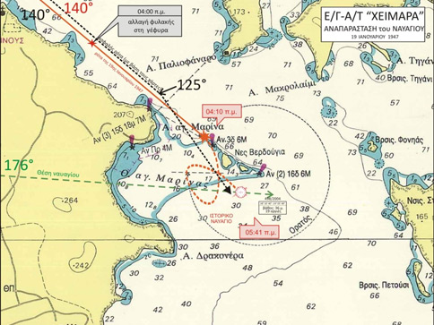 To «Χειμάρα» βούλιαξε σε ηλικία 42 ετών και αποτελούσε το τελευταίο ατμόπλοιο της ελληνικής ακτοπλοΐας. Έπειτα από επισκευές στον Πειραιά, εκτελούσε την ακτοπλοϊκή γραμμή Θεσσαλονίκη-Πειραιάς. Επρόκειτο για μια εναλλακτική διαδρομή, καθώς εν μέσω εμφυλίου, το οδικό δίκτυο της χώρας βρισκόταν σε τραγική κατάσταση.