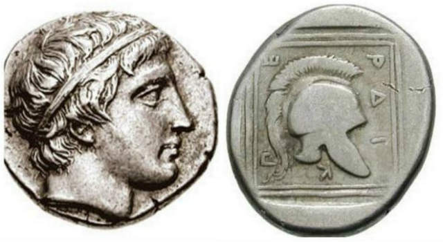 Αριστερά: νόμισμα με την κεφαλή του Αέροπου. Δεξιά: νόμισμα που αναγράφει το όνομα του Περδίκκα