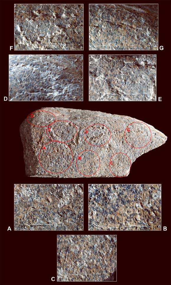 Φωτογραφία της χαραγμένης πλευράς με κοντινά πλάνα από τα επτά ημικυκλικά μοτίβα.