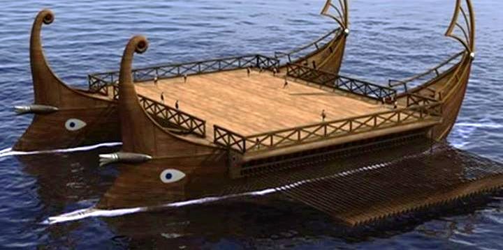 Τέτοιες περιπτώσεις είναι γνωστές στην ελληνιστική περίοδο, π.χ. κατά την πολιορκία των Συρακουσών από τους Ρωμαίους (212 π.Χ.), οι τελευταίοι συνέδεσαν με τον ίδιο τρόπο πεντήρεις, προκειμένου να τοποθετήσουν στο κοινό κατάστρωμα τις απαραίτητες «ελεπόλεις» (πυργοειδείς πολιορκητικές κατασκευές) για την κατάληψη των παράκτιων τειχών της πόλης.