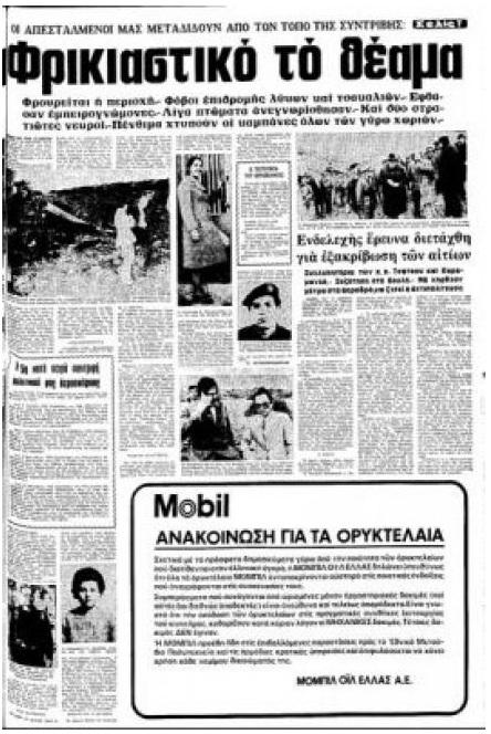 Οι κάτοικοι του χωριού Μεταξάς άκουσαν την έκρηξη και έσπευσαν πρώτοι στον τόπο του δυστυχήματος, αψηφώντας τη χιονοθύελλα που επικρατούσε στην περιοχή. Οι εικόνες φρίκης που αντίκρισαν θα τους στοίχειωναν για πολύ καιρό. Το αεροσκάφος είχε κοπεί στα τρία και ανθρώπινα πτώματα καίγονταν σε μεγάλη ακτίνα. Μία φοβερή μυρωδιά από καμένες σάρκες γέμιζε την ατμόσφαιρα σε αρκετή απόσταση.