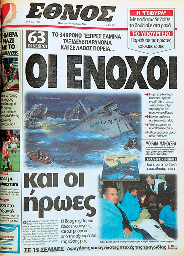 Σαν σήμερα πριν από δεκαοκτώ χρόνια το «Εξπρές Σάμινα» ναυαγεί ανοικτά της Πάρου παρασέρνοντας στον θάνατο 81 ανθρώπους.
