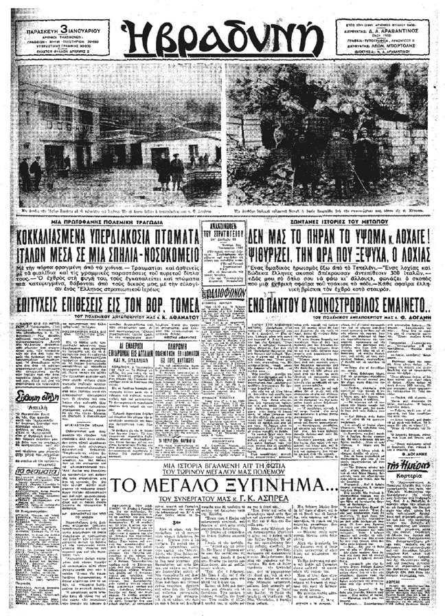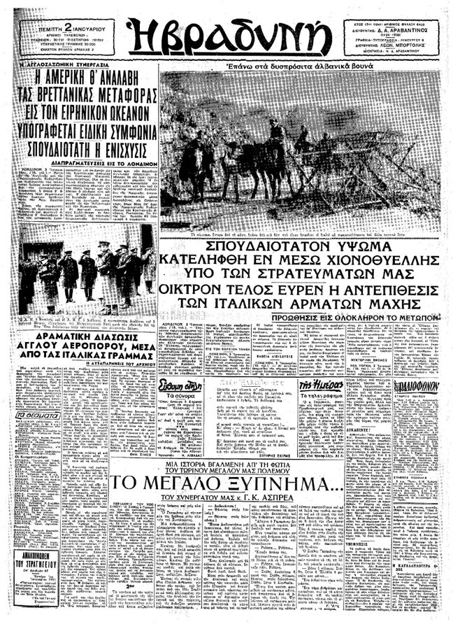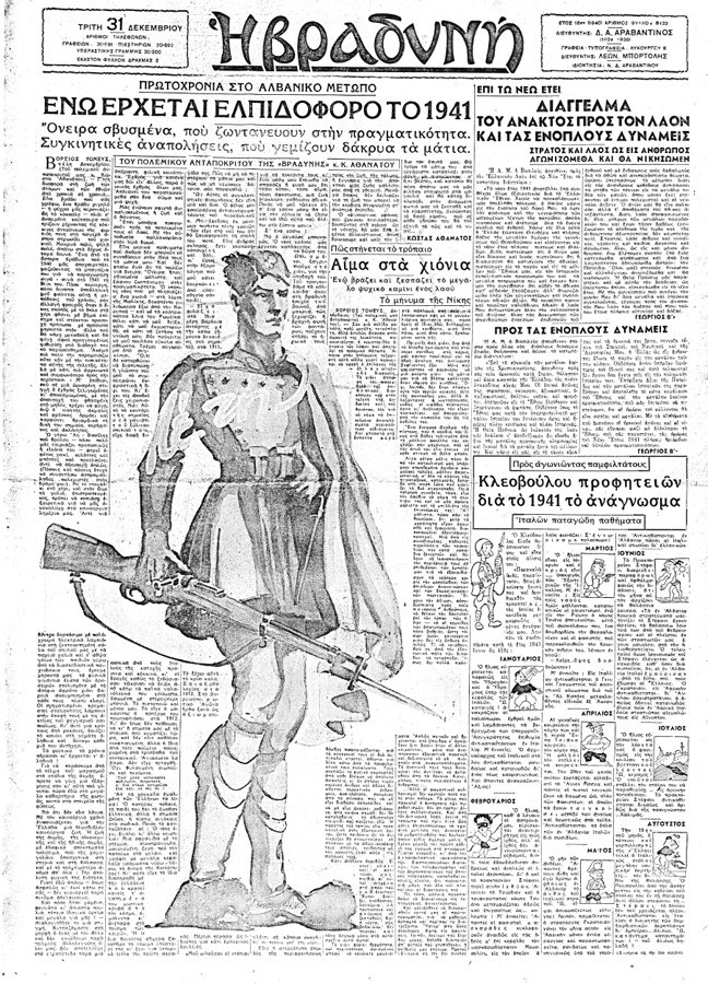 Ακολουθούν διάφορα πρωτοσέλιδα της εφημερίδας «Βραδυνή» από την εποχή του ελληνοϊταλικού πολέμου