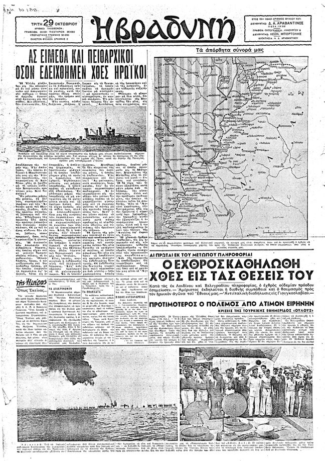 Ενδιαφέρον πάντως παρουσιάζουν τα πρωτοσέλιδα της εποχής που αναφέρονται στον πόλεμο γενικά και όχι μόνο στη συγκριμένη ημέρα…