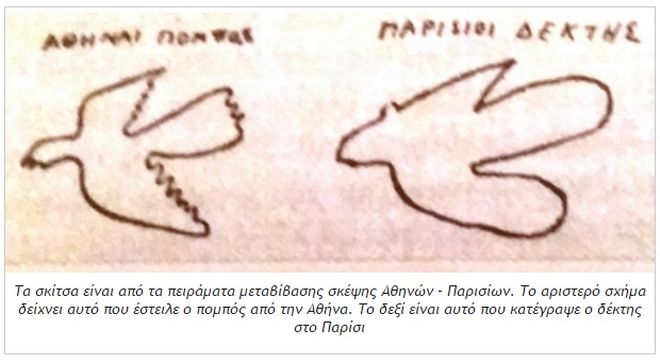 Σκοπός των δύο ομάδων ήταν να κάνουν ένα πείραμα τηλεπάθειας, μεταξύ Παρισίων και Αθήνας. Η Αθήνα έστειλε με τους πομπούς της, δηλαδή με τις σκέψεις των μέντιουμ, διάφορα σχήματα.