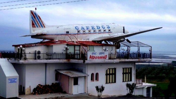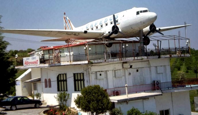Ήταν στα τέλη της δεκαετίας του ’80 όταν το περίφημο «Καφέ αεροπλάνο» αποτελούσε την αγαπημένη καλοκαιρινή εξόρμηση οικογενειών και ζευγαριών που περνούσαν ώρες ατέλειωτες στο αεροσκάφος που βρέθηκε προσγειωμένο σε ένα διώροφο κτίριο στο 43οχιλιόμετρο Θεσσαλονίκης – Κατερίνης, στο Αιγίνιο Πιερίας και ορατό από την εθνική οδό.