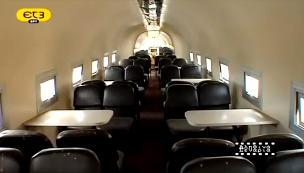 Τα καθίσματα είναι ανά τετράδες και στη μέση τους έχουν ένα τραπεζάκι, με αυτές τις παράξενες τετράδες να βρίσκονται τοποθετημένες στην ίδια ευθεία με καθένα από τα παράθυρα. 44 τραπεζοκαθίσματα στο σύνολό τους.