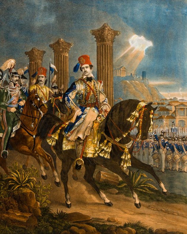 «”Είναι γυμνοί και βρόμικοι”, εδήλωσε ο Οθων όταν μπήκε μέσα. “Να… τους αλλάξετε”. Αλλά πώς ήταν δυνατό να γίνει αυτό; Λίγο έλειψε να ματαιωθεί ο χορός. Τέλος ένας Βαυαρός αξιωματούχος βρήκε τη λύση. Επρότεινε να σκεπασθούν οι τοίχοι με λευκά σεντόνια, όπου ήταν γραμμένη η φράση: “Ζήτω ο Οίκος των Βιττελσβάχων”» (σ.σ. η βαυαρική δυναστεία από την οποία προήρχετο ο Οθων).